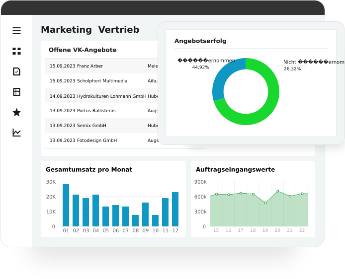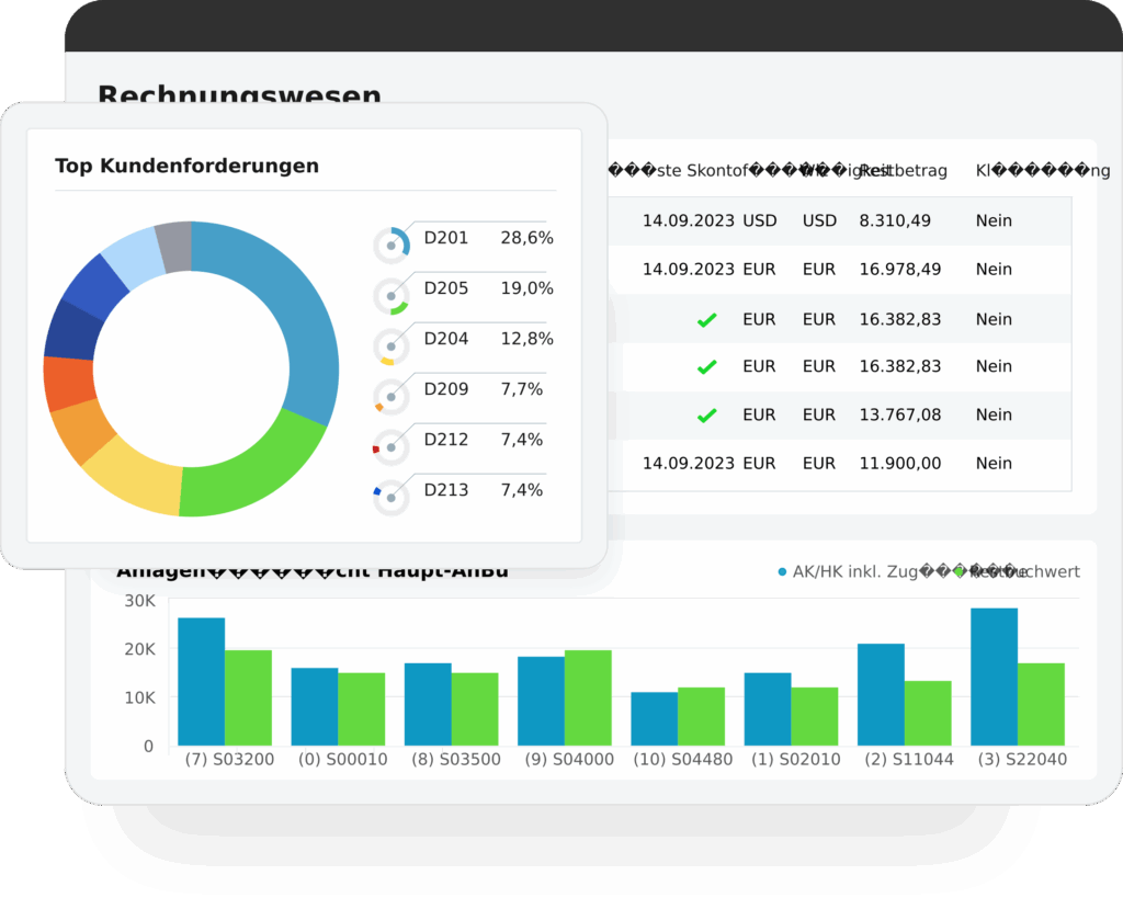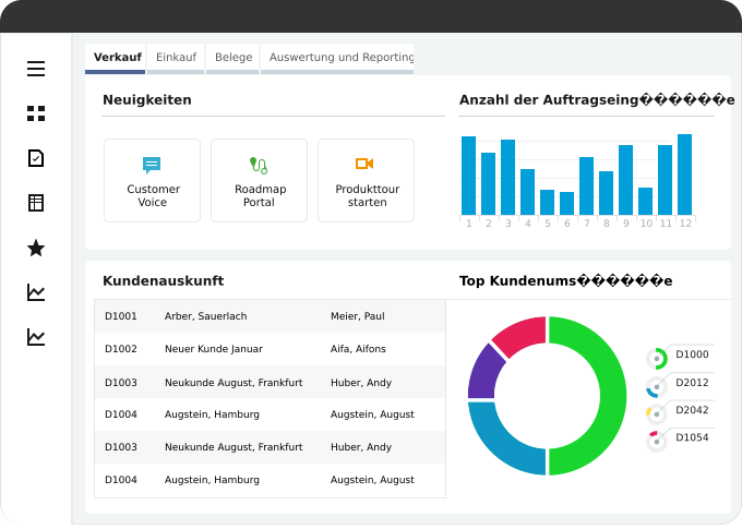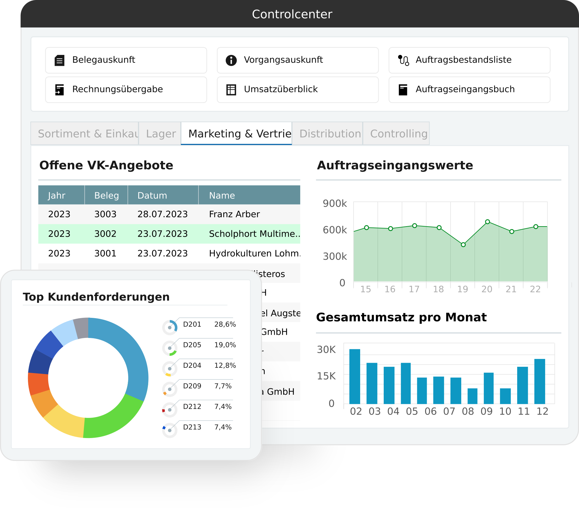 - Kundenbezogene Auswertungen Umsatz, Zahlungsverhalten und offene Posten – alles auf Knopfdruck.