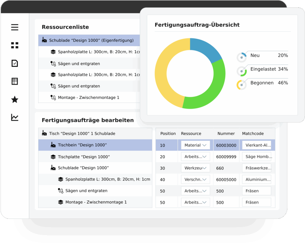 - Prozesse & Ressourcen jederzeit im Griff Maximale Transparenz und Kontrolle für eine effiziente Fertigung.