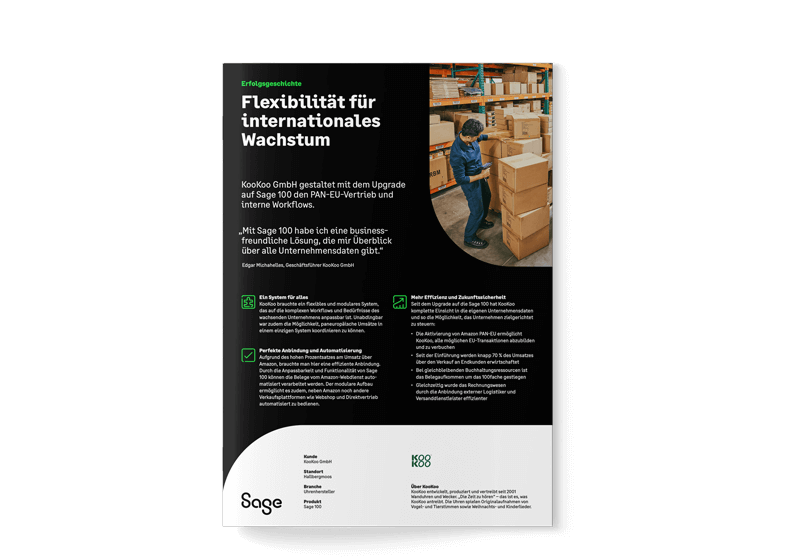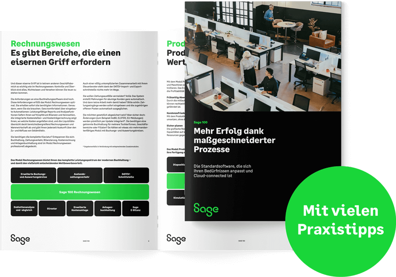 Sage 100 ist eine modulare ERP-Lösung mit einem umfassenden Funktionsumfang. Alle Details und Vorteile finden Sie in unserer ausführlichen Produktbroschüre.